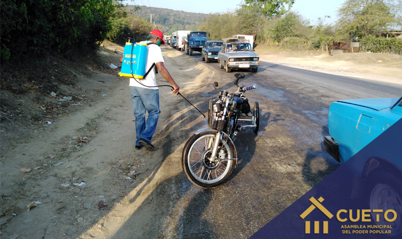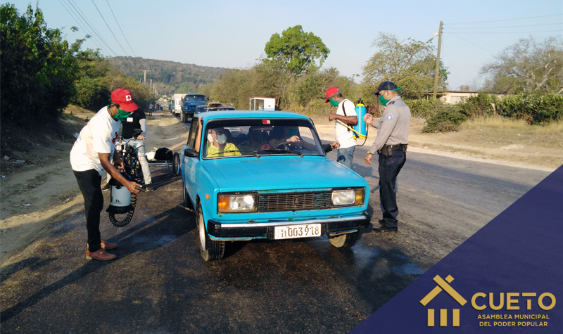 #CuetoEsSalud, #AMPPCueto, Atemperados a las decisiones a nivel de país, en #Cueto el CDM continúa adoptando medidas para combatir la propagación de la #Copvid-19, en la intercepción de las carreteras a Santiago de Cuba y Moa su realiza la fumigación a los autos y el pesquisaje a los conductores y pasajeros. #CubaEsSalud, #QuedateEnCasa